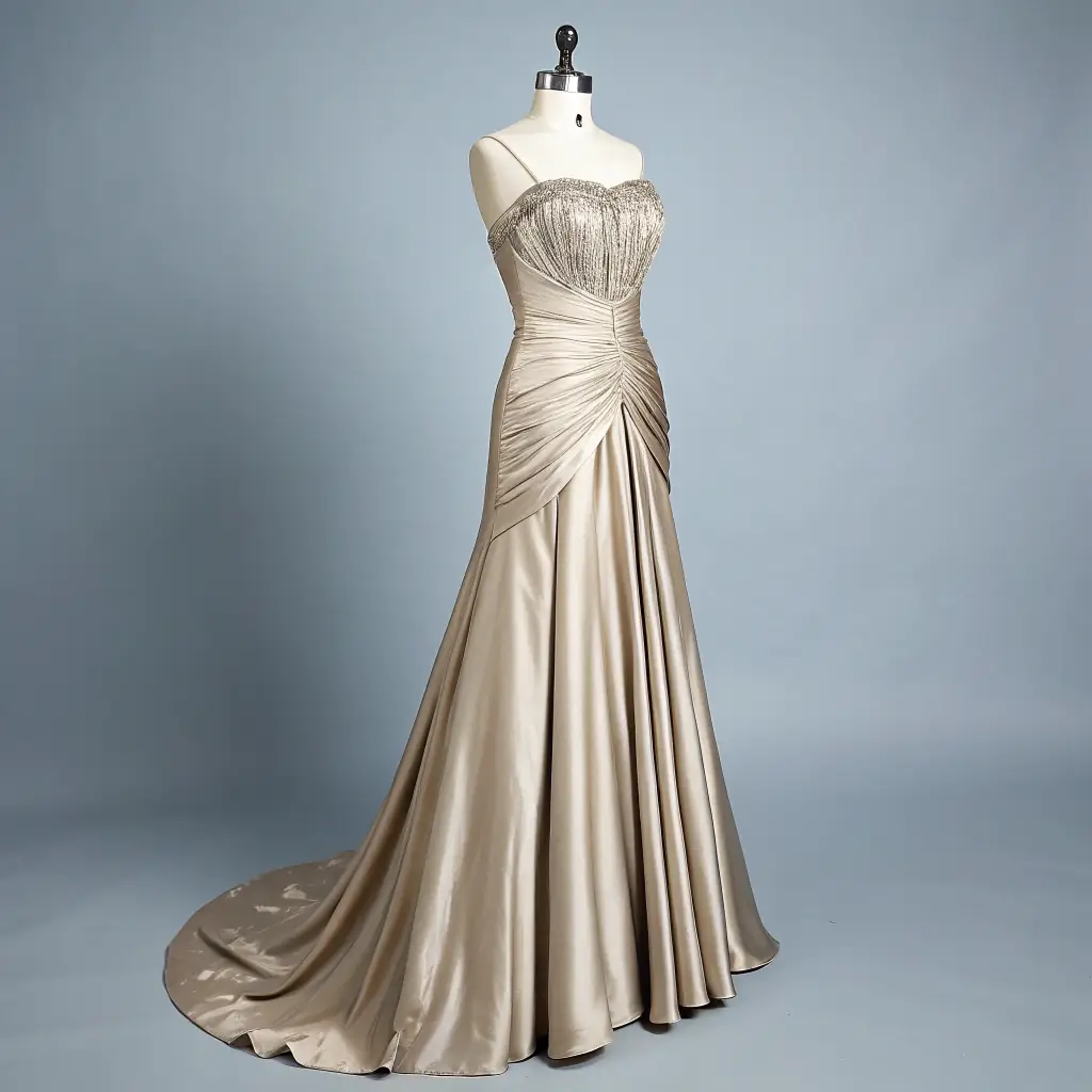 这款奢华的丝绸长裙采用飘逸的廓形设计,尽显优雅与精致。它由高品质丝绸制成,质地顺滑,光泽柔和,非常适合冬季夜晚或特殊场合。这款连衣裙采用含蓄的领口和精致的细节设计,确保精致的外观。其舒适的版型使其成为在寒冷季节寻求时尚与保暖的女性的理想选择。