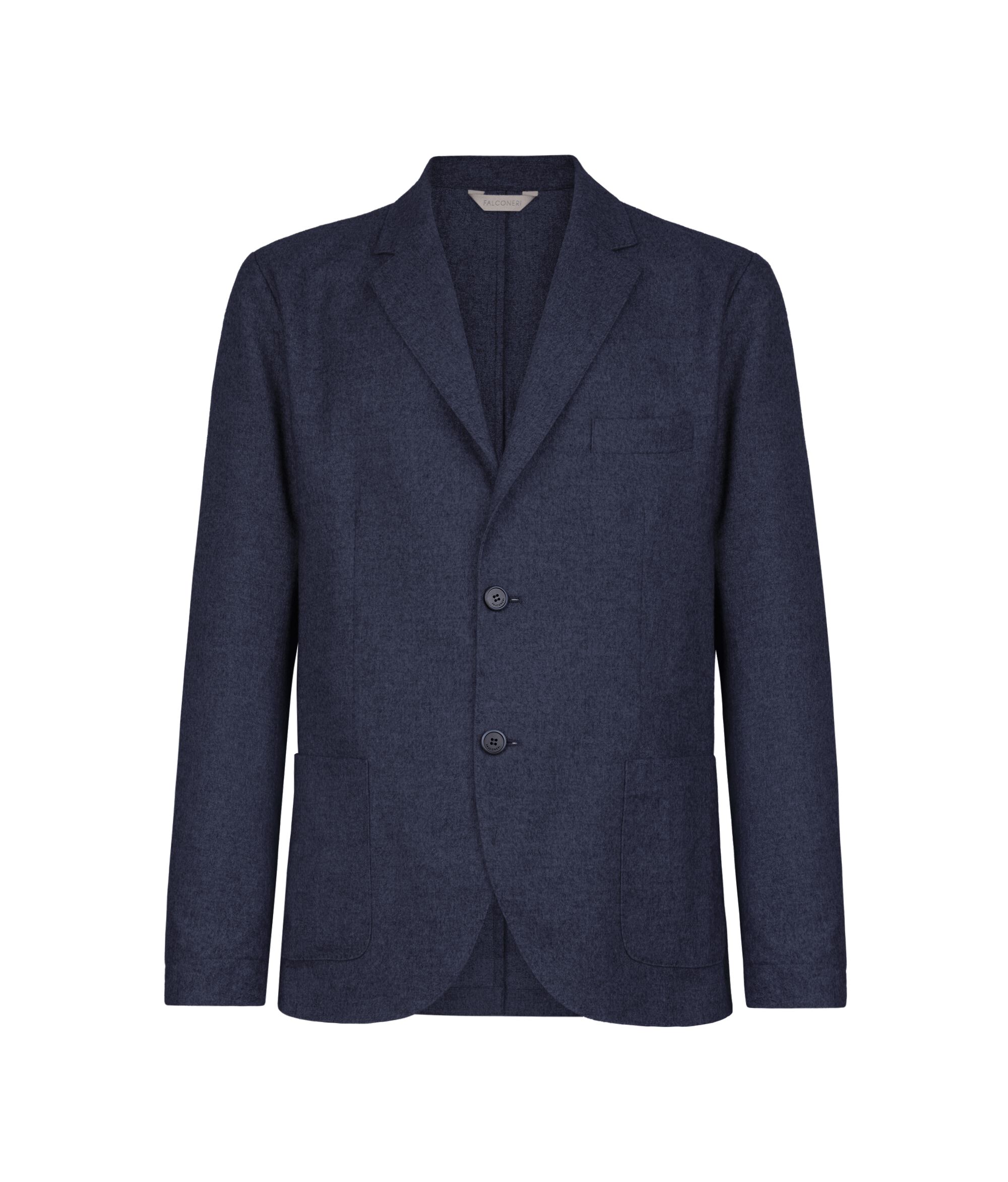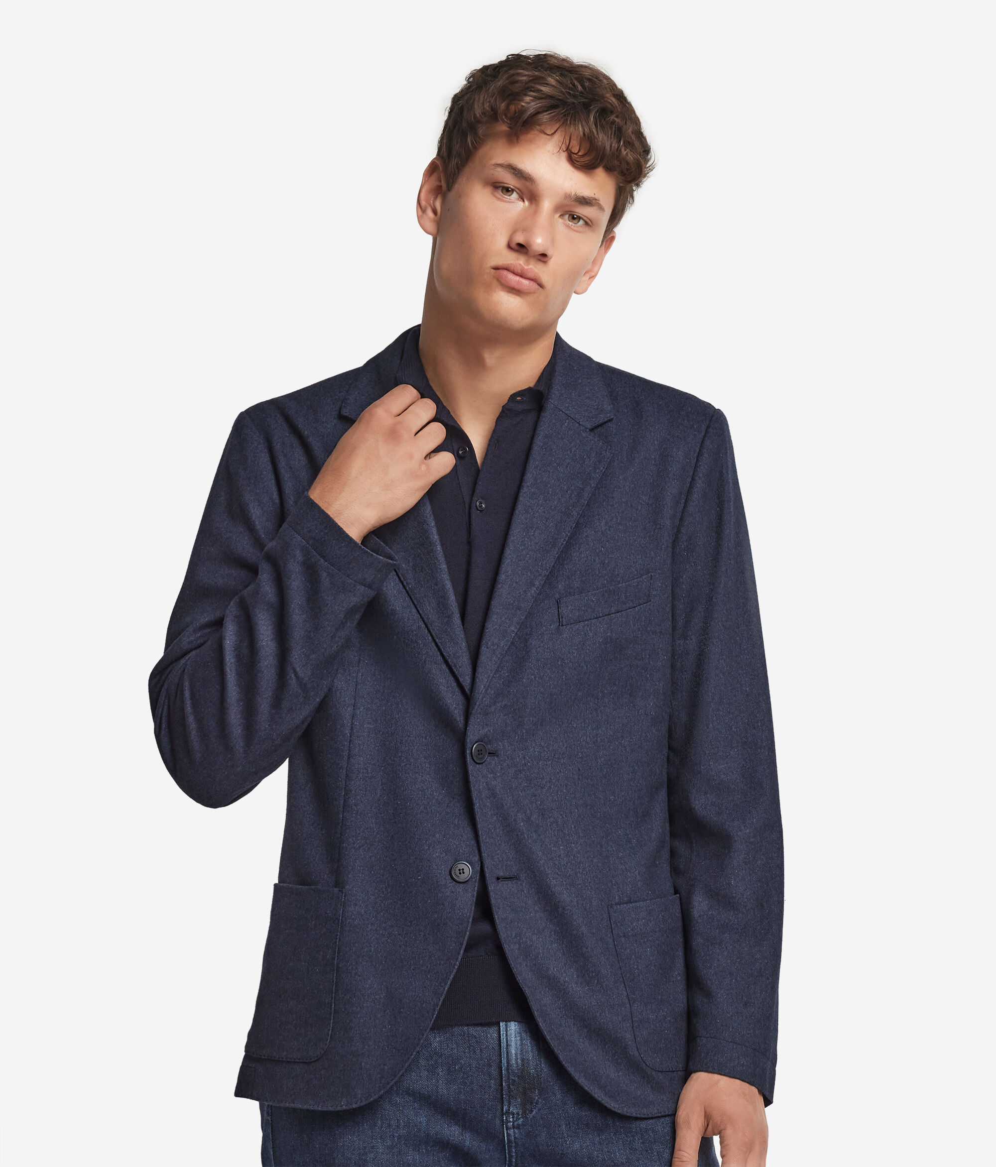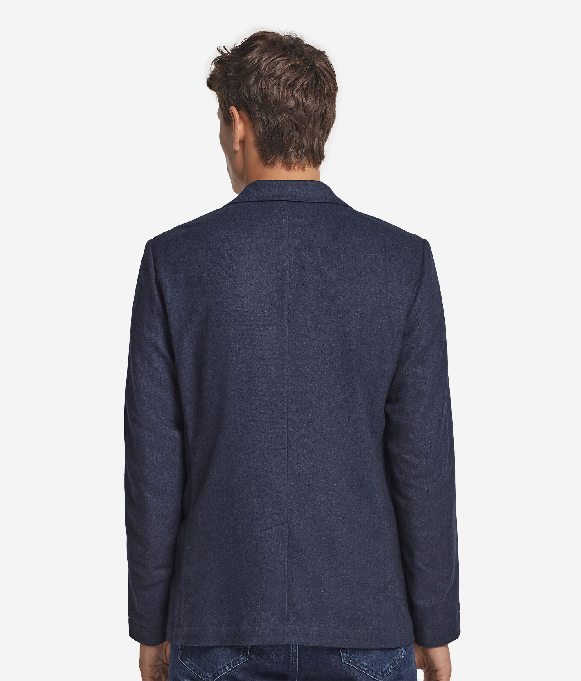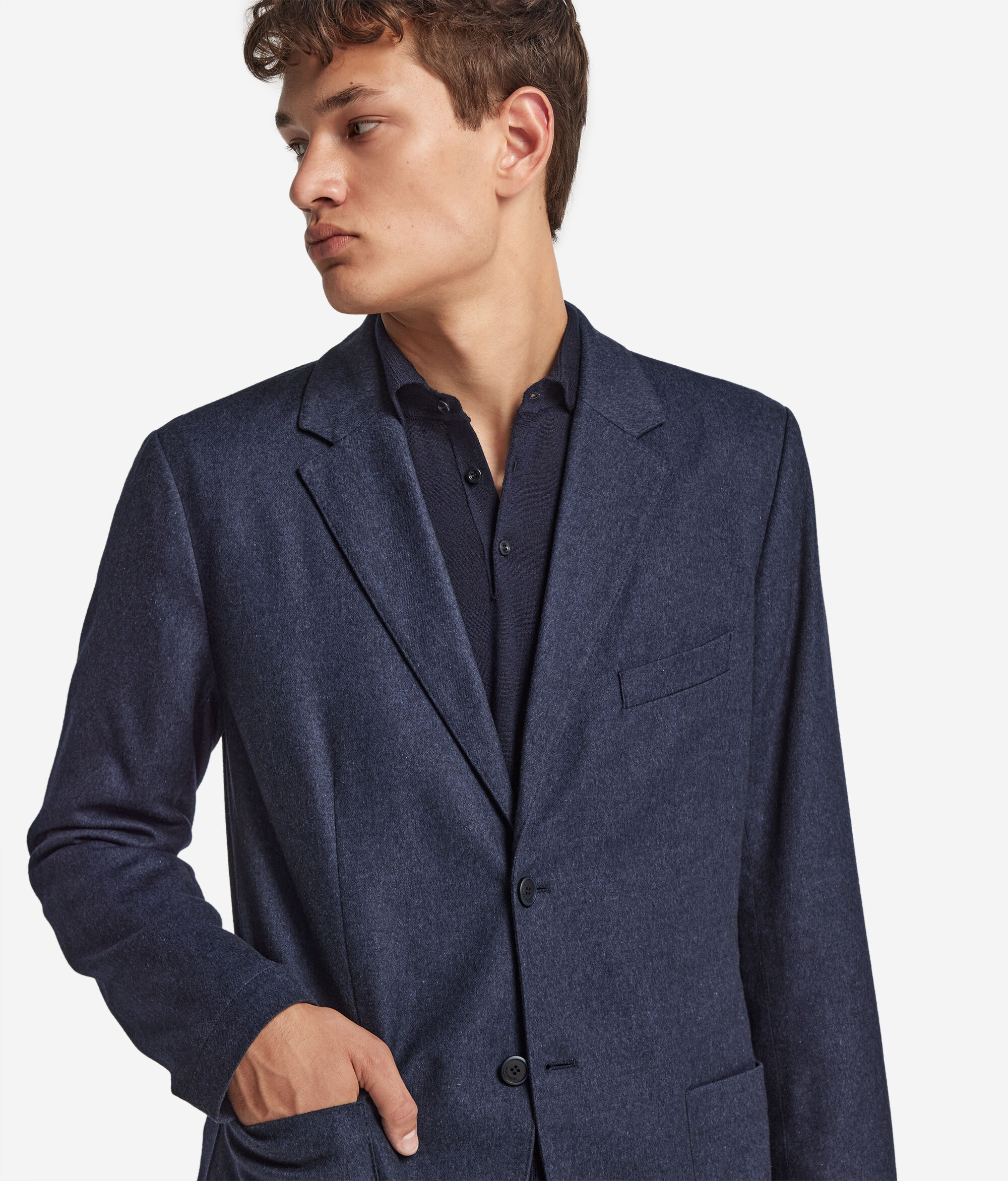 Fine yarns and sartorial details enhance the refined silhouette of this cashmere and silk jacket. The classic design is enriched by a lapel with tailored stitching and a central two-button fastening. A perfect piece to complete formal looks with a touch of timeless elegance.