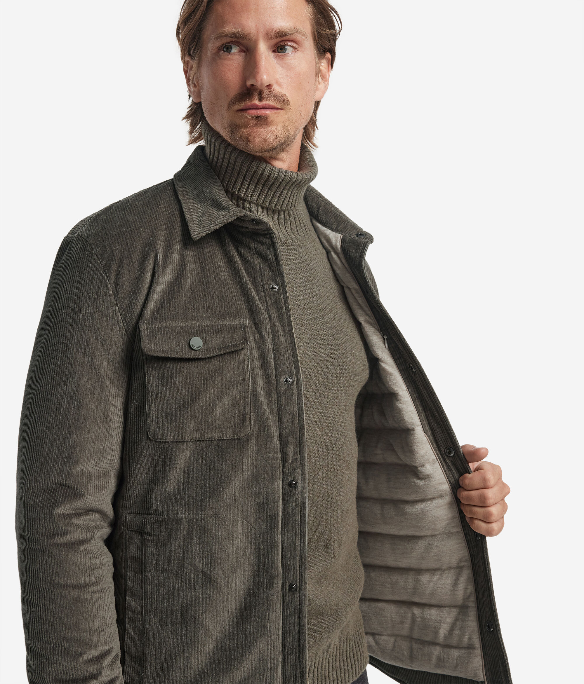 This overshirt combines the elegance of cotton velvet with the practicality of a piece perfect for the half-seasons. The shirt-style collar and front button closure define a bold and versatile look. Completing the design are structured cuffs and hip pockets, which, along with patch pockets on the chest, add a functional touch. The quilted Ultralight Cashmere interior provides protection, while the loose fit offers relaxed, contemporary elegance.