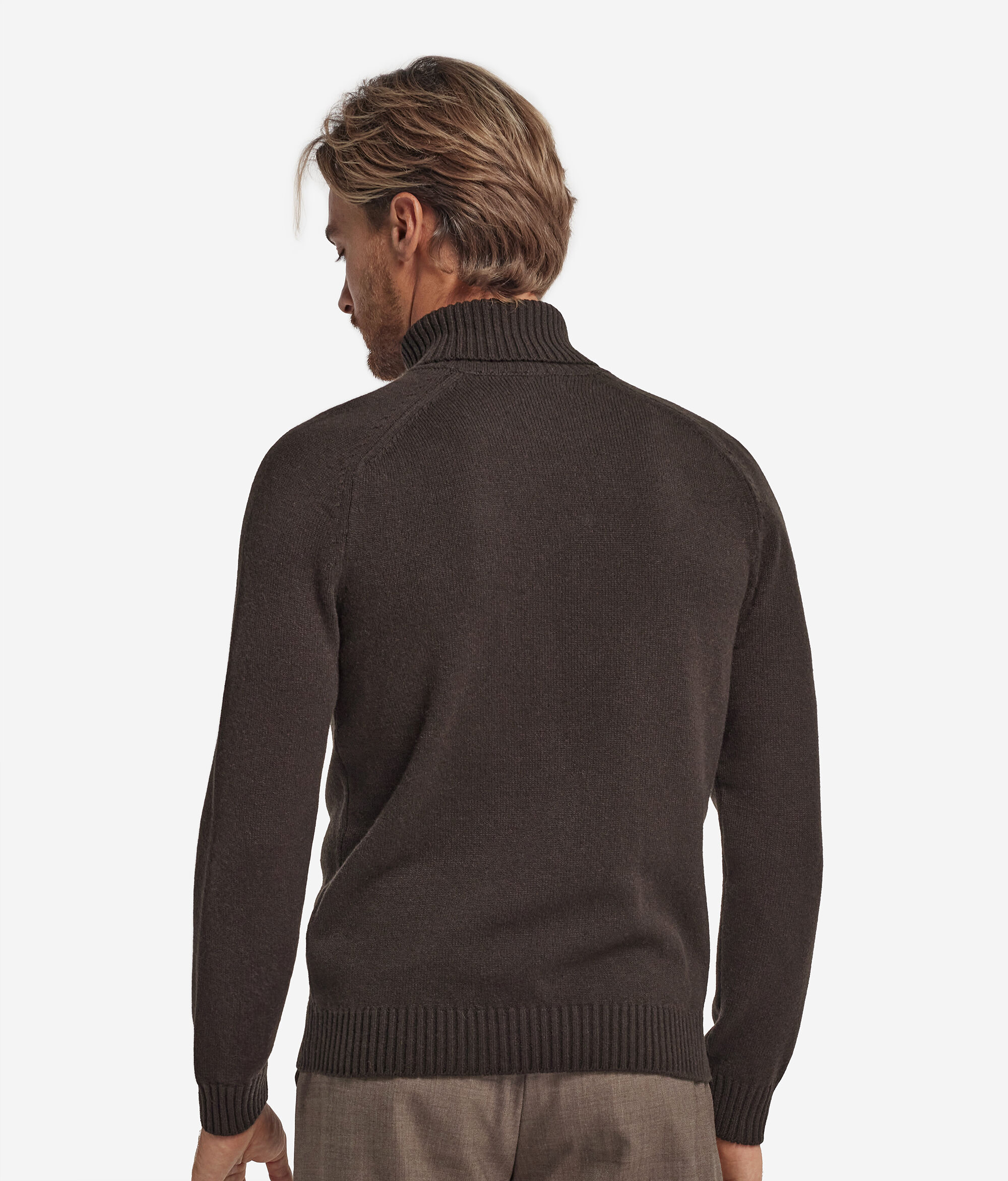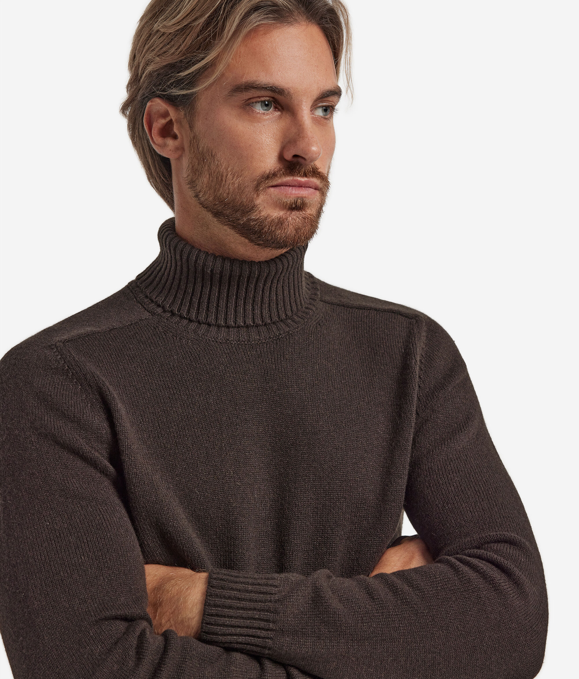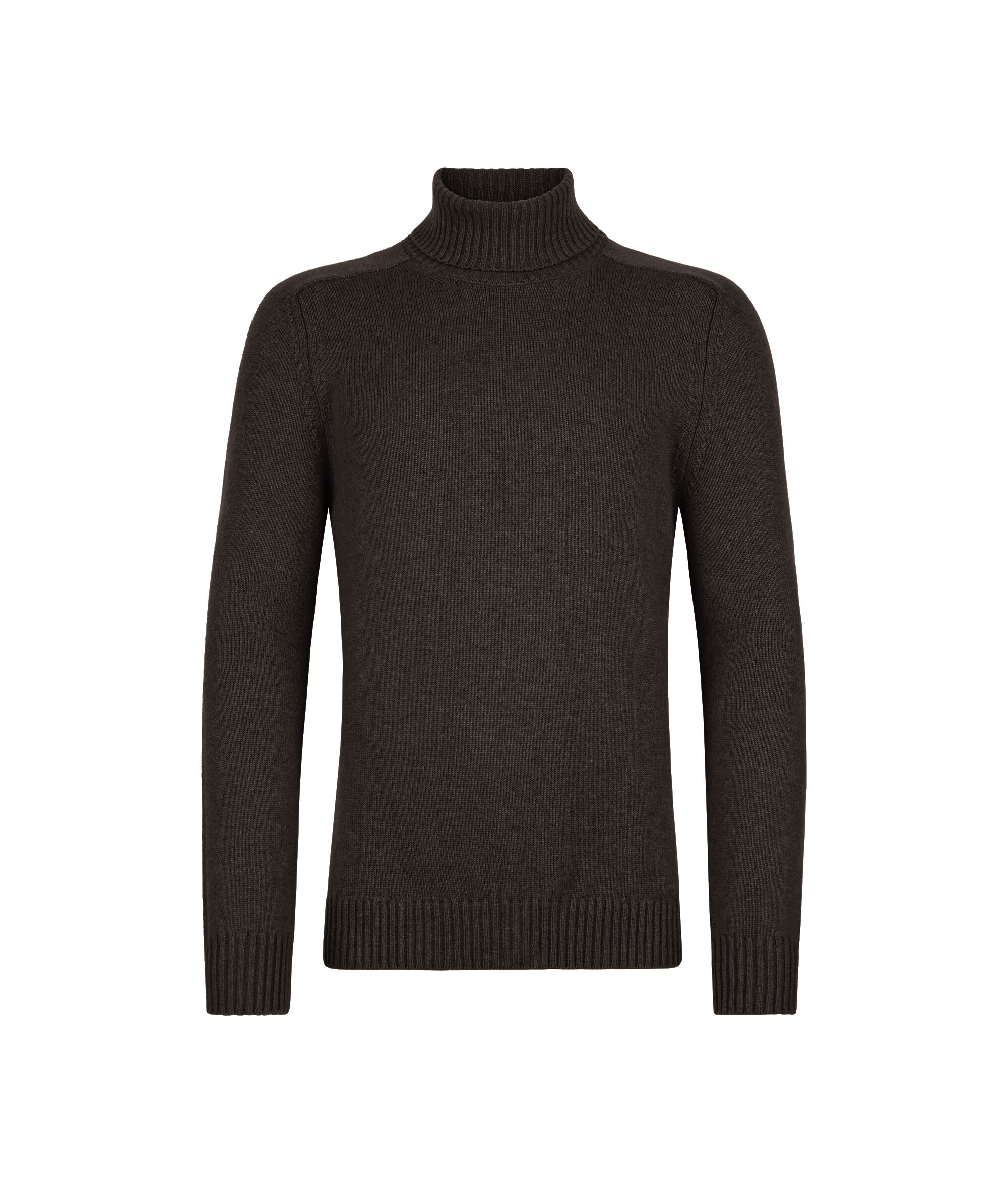 Innovative accents and exclusive yarns combine to create a timeless, refined piece. The new turtleneck sweater is garment-dyed with a washed, marbled effect, adding an extra touch of dimension to the versatile design.