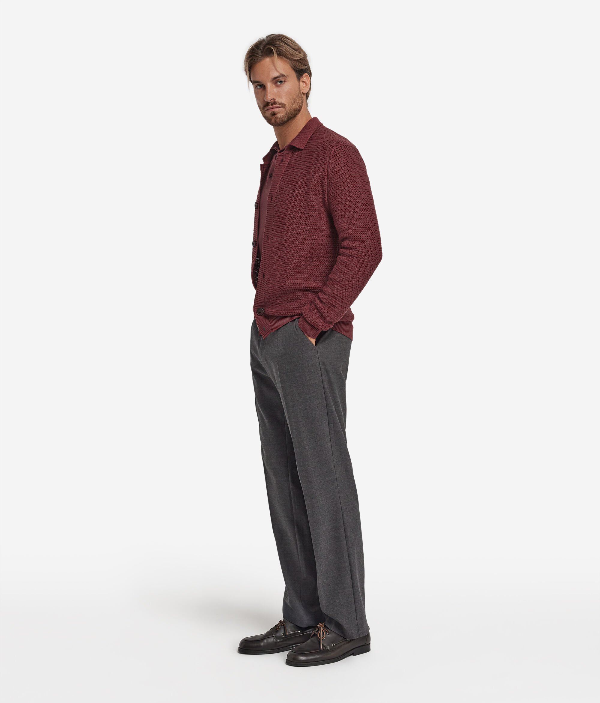 Clean design and material texture define this wool knit shirt jacket. The structured collar and single-breasted buttoning create a clean, refined silhouette, enhanced by the Regular Fit. We recommend sizing up one to two sizes for the best fit. An extremely versatile garment, it can be worn casually alone or as a light outerwear, ideal for layered and minimal chic looks.